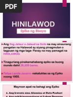 Filipino 28102019 2129 kimashleybartolome. Ang epikong Hinilawod na nangangahulugang Mga Kuwento Mula sa Bukana ng Ilog ng Halawod ay isang epiko ng mga sinaunang naninirahan sa lugar na tinawag na Sulod sa Panay Taglay nito. Manuel 1963 ang Hinilawod ng gitnang Panay ang pinakamahaba at pinakamagkakaugnay na epikong naitala sa Pilipinas.