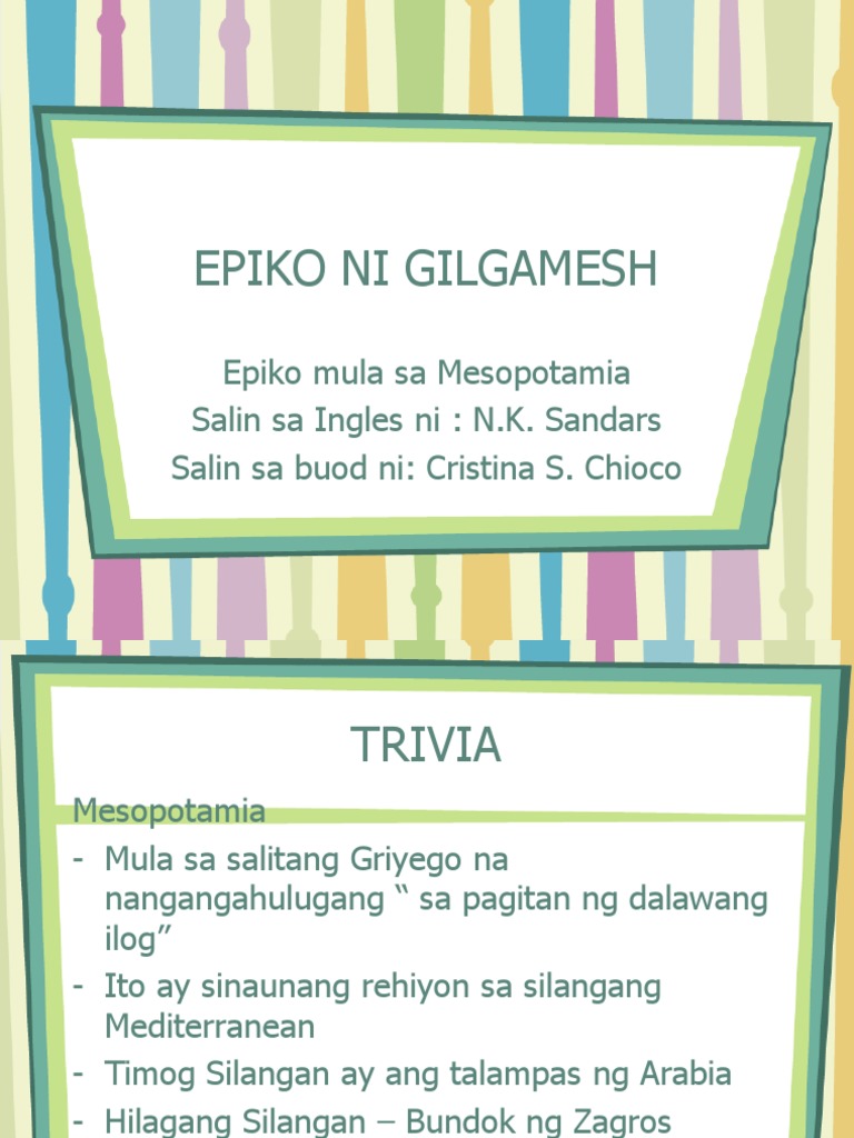 Ano ang ibig sabihin ng epiko ng gilgamesh. Ang Epiko ni Gilgamesh isang akdang patula na mula sa Mesopotamia Iraq kinilala ito bilang kauna-unahang dakilang likha ng panitikan. Matipuno matapang at makapangyarihan. NANG Halimbawa ng mga Pangungusap na Gumagamit ng Nang.