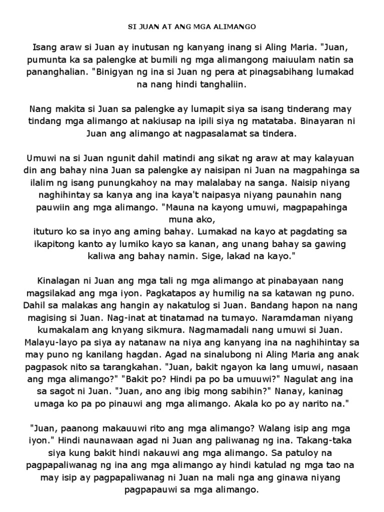 Bigaon si rizza piamonte. These elements keep the story running smoothly and allow the action to develop in a logical way that the reader can follow. Ang mga maiikling kwento sa aking palagay ay nagbibigay-daan sa iyo upang mag-eksperimento ng.