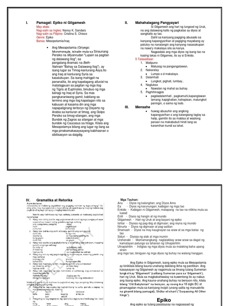 Epiko ni GilgameshAng Epiko ni Giglamesh ay nagsimula sa Mesopotamia na madalas na itinuturing na pinakamatanda na umiiral sa panitikanAng BuodNagsimula ang epiko sa pagpapakilala kay Gilgameshang hari ng lungsod ng Uruk. Comment s for this post KATANGIAN NG EPIKO Mga Katangian Ng Akdang Patula. Ang kasaysayan ng Gilgamesh ay nagsimula sa limang tulang Sumerian tungkol kay Bilgamesh salitang Sumerian para sa Gilgamesh hari ng Uruk.