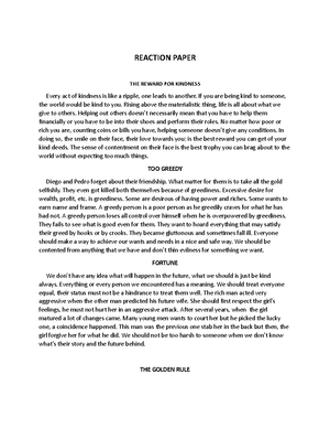 Reaction Paper Grade B Reaction Paper The Reward For Kindness Every Act Of Kindness Is Like A Studocu