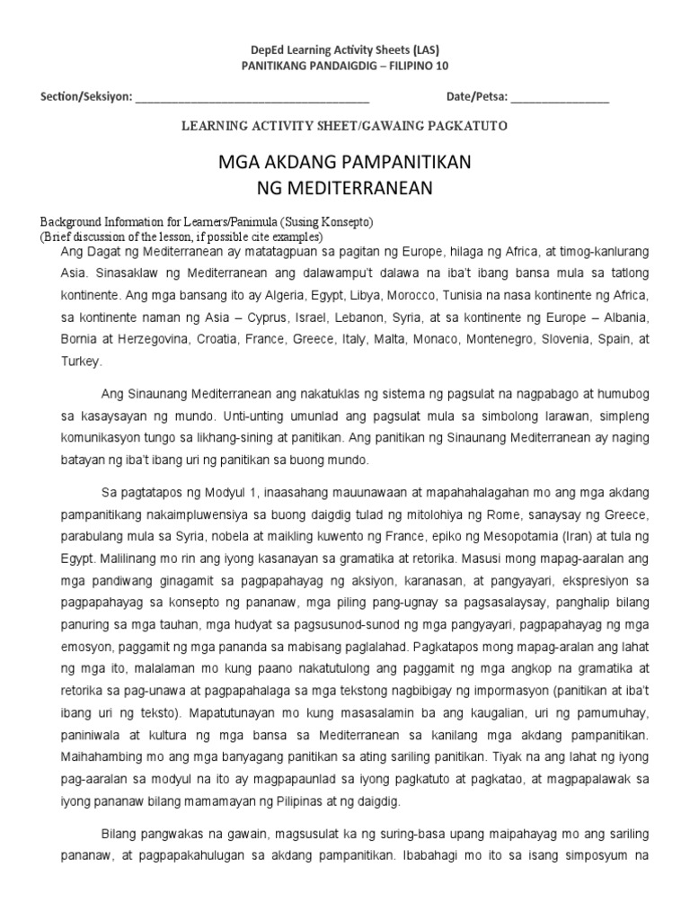 Filipino Modyul 1 Mga Akdang Pampanitikan Ng Mediterranean Docx Modyul 1 Mga Akdang Pampanitikan Ng Mediterranean Aralin 1 1 Mitolohiya Rome Italy A Course Hero