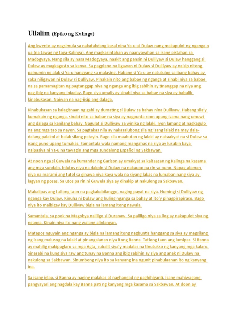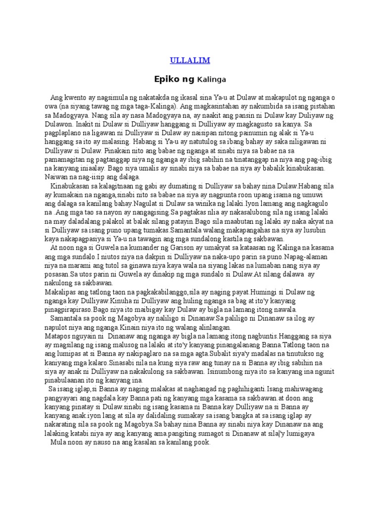 Beiweamant Kwento ulalim epiko ng kalinga Ullalim epiko ng kalinga Ullalim Epiko ng Kalinga Ang kwento ay nagsimula sa nakatakdang. BANNA ng Ullalim ng Kalinga. Tell us what you think abut this post by leaving your comments below.
