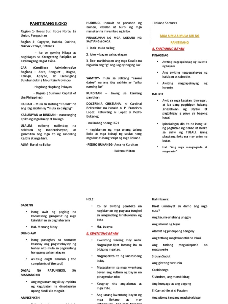 At hayaan lamang at daanan. Manang biday Pamulinawen Bannatiran No siak ti agayat Ilocano a nadayag Tontonennaka toy ayat Toy datonko Mannamili Naraniag a Bulan Epikong Filipino Ang mga sumusunog ay ang mga epikong filipino. Ito ay isang popular na katutubong awitin ng mga Ilokano.