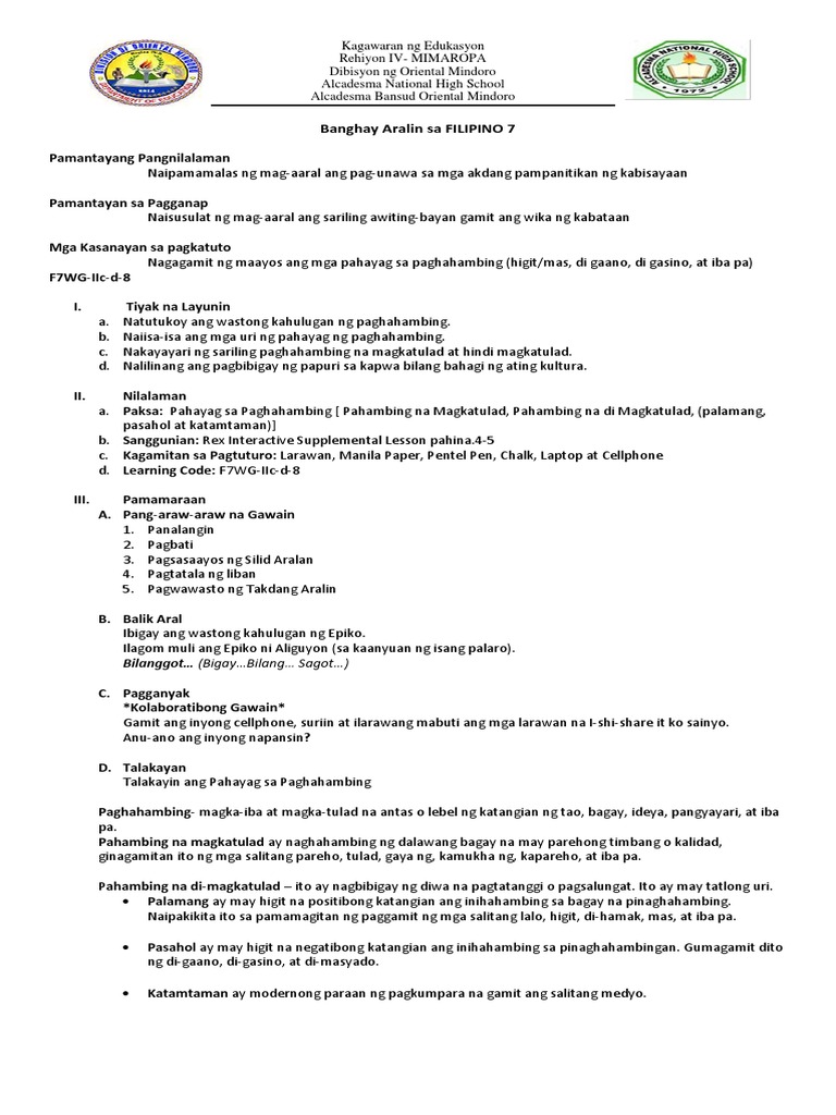 Rex Interactive Supplemental Lessons Filipino G7 Scribd Course Hero