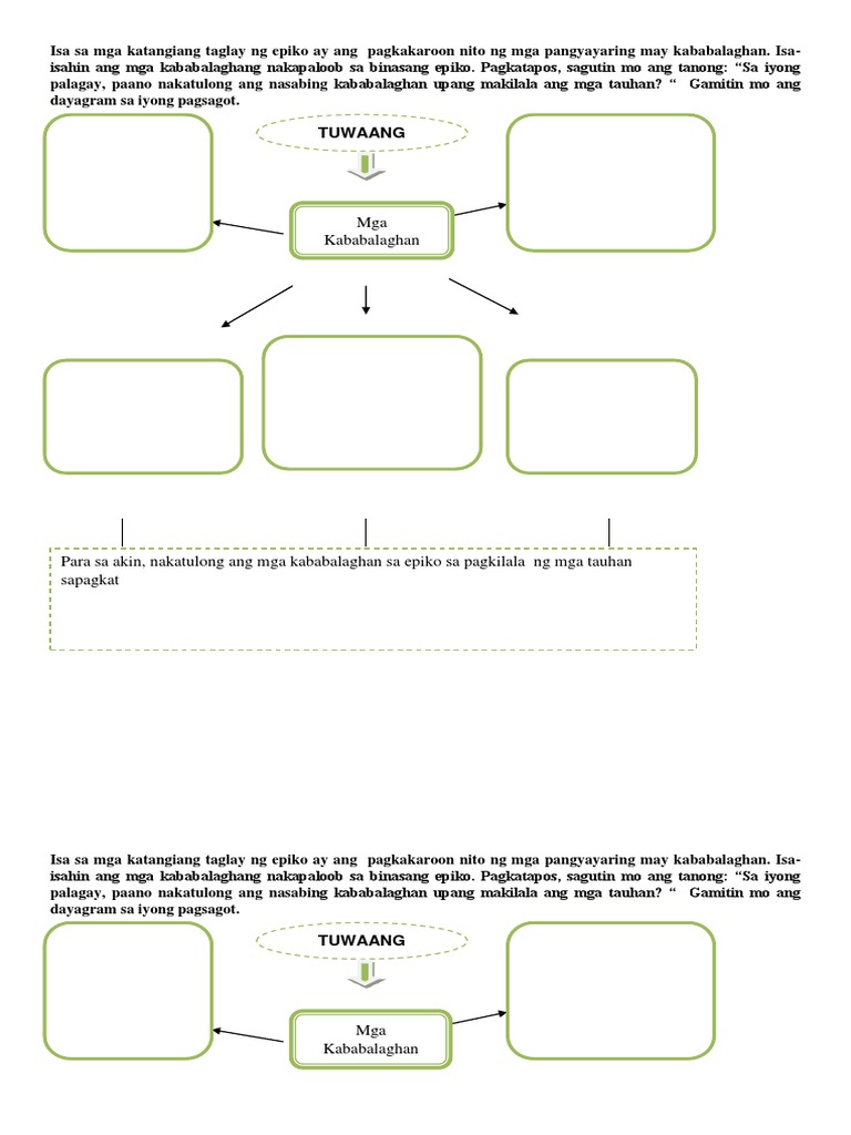 Ang Pilipinas ay mayaman sa panitikan lalo na pagdating sa Epiko. Gamitin mo ang dayagram sa iyong pagsagotGawin. Isang instrumentong pinapatunog sa pamamagitan ng paghampas dito.