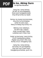 Tinuruan nyo ako ng mga bagay na datiy di ko kaya Kaya ngayon mas gumaling akong. Tula para sa mga bata sa araw ng graduation. Handang ialay buo niyang sarili.